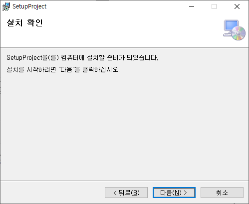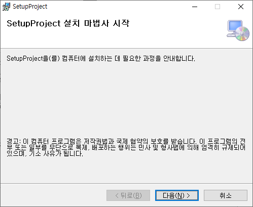 SetupProject.msi 파일을 실행하여 설치를 진행합니다.