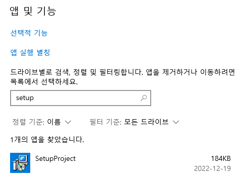앱 및 기능에 들어가보면 제대로 설치된 것을 확인해볼 수 있습니다.