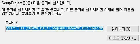 기본 설치 폴더가 Default Company Name \ SetupProject로 설정되었고