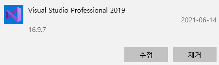 앱 및 기능에 들어가서 설치된 Visual Studio 버전을 찾고