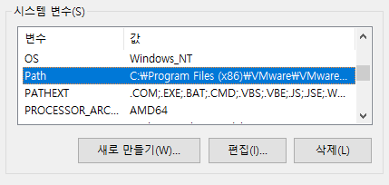 시스템 환경 변수 편집 > 시스템 변수 > Path 편집으로 들어가서