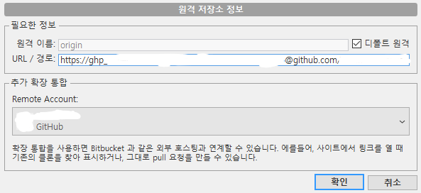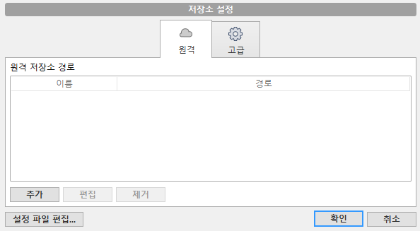 이제 소스트리 저장소 설정 창에서 저장소 주소를 추가합니다.