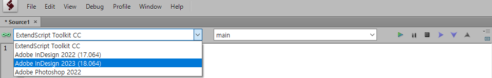 설치된 Adobe 제품 중 원하는 프로그램을 지정하여 스크립트를 바로 실행해볼 수 있습니다.