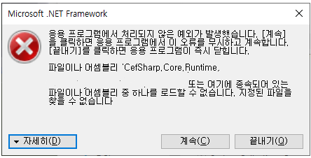 보통 이런 문제는 개발했던 PC와 환경이 다른 PC에서 프로그램을 실행하려고 할 때 발생하는데