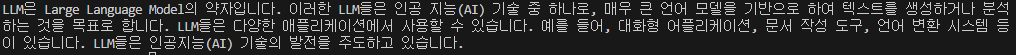 결과를 보면 한글자씩 바로바로 출력되는 모습을 확인할 수 있으며, 이런 것을 스트리밍 출력이라고 표현합니다.