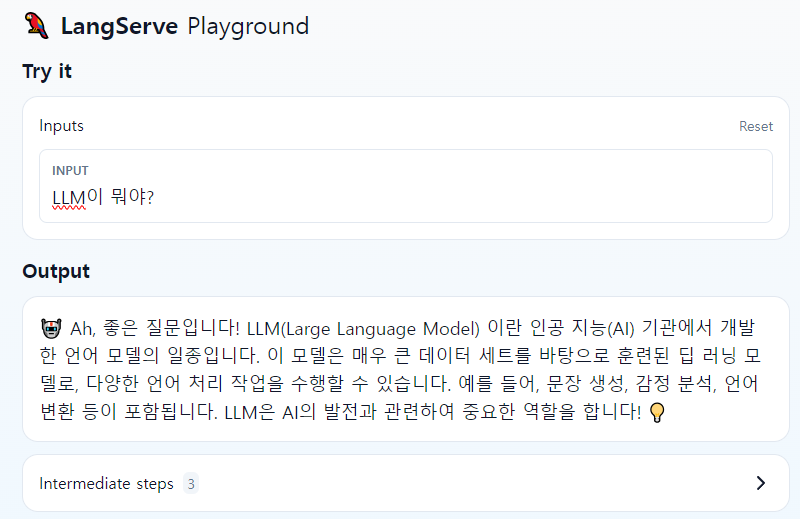 🔷 LangServe playground로 테스트하는 예제 구현해보겠습니다.