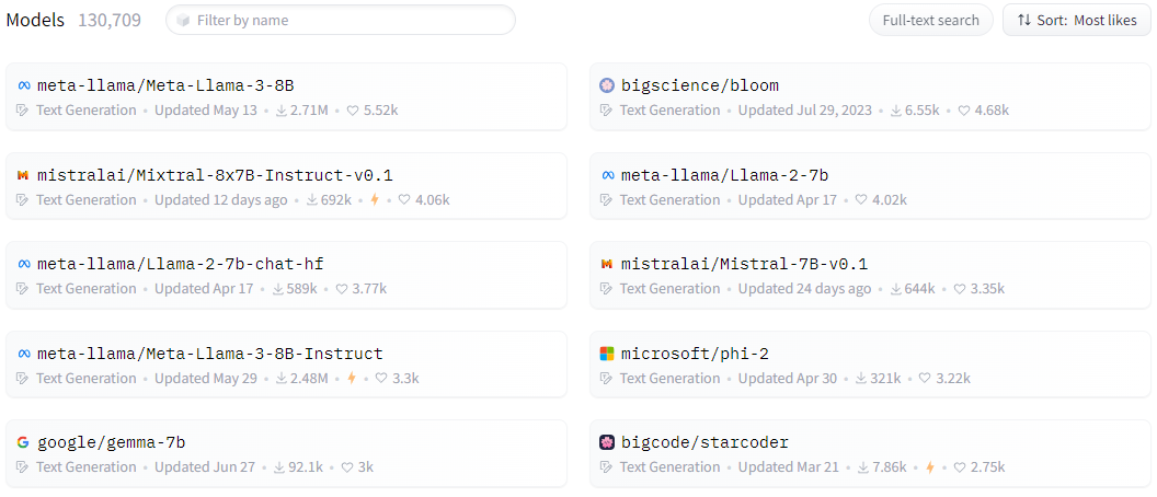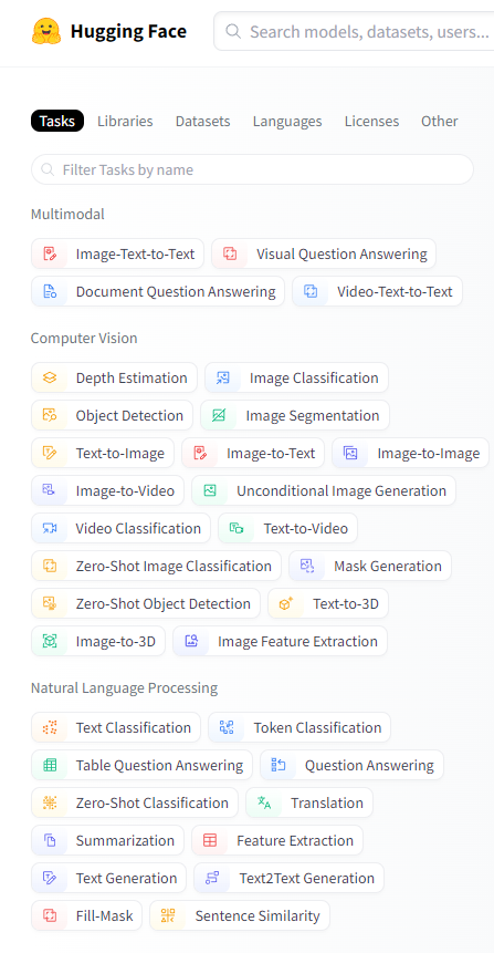 허깅페이스 사이트에 접속해 모델 카데고리를 살펴보면