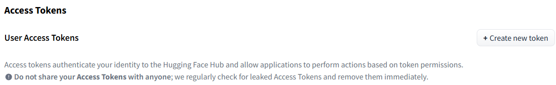 허깅페이스 계정이 없다면 만들어주시고 아래 링크에 접속해서 토큰을 생성합니다.