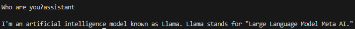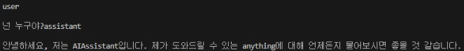 모델 다운로드가 끝난 후 Who are you? 라는 질문에 대한 결과이며