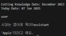 messages = [{"role": "user", "content": "사과는 영어로 뭐야?"}]