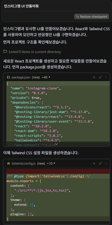 개발에 특화된 Agent이기 때문에 별다른 개발 지식 없이 대충 물어봐도 알아서 코드를 생성해냅니다.