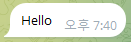 그럼 이제 아래와 같이 입력하면 봇이 메세지를 전송합니다.