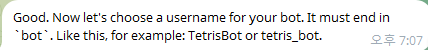 봇 이름 끝에는 반드시 bot이 들어가야된다고 합니다.