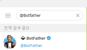 텔레그램에서 @Botfather를 검색해서 대화를 시작합니다.